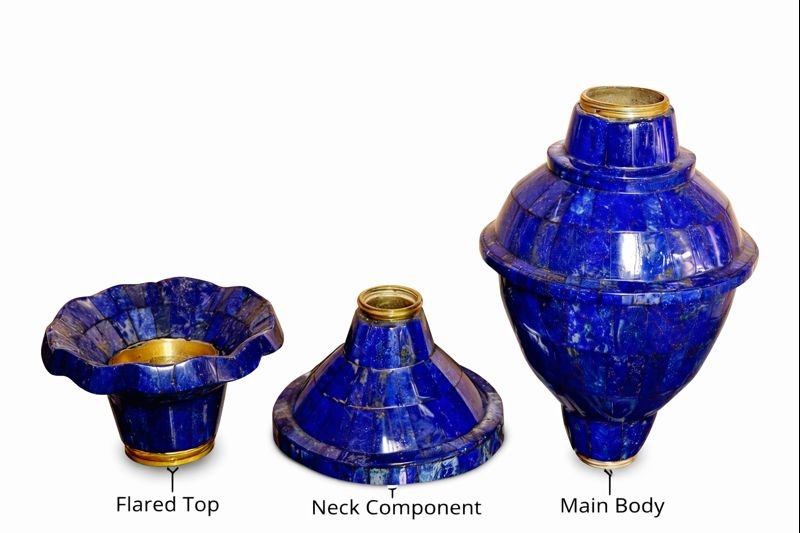 Please note that these vases are a patch work of natural stone with copper by expert craftsmen.