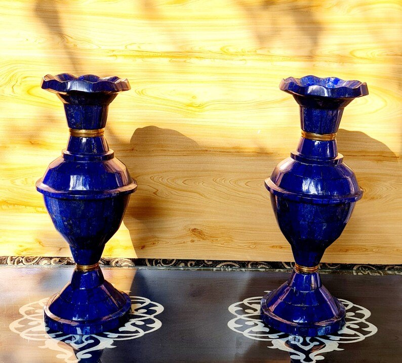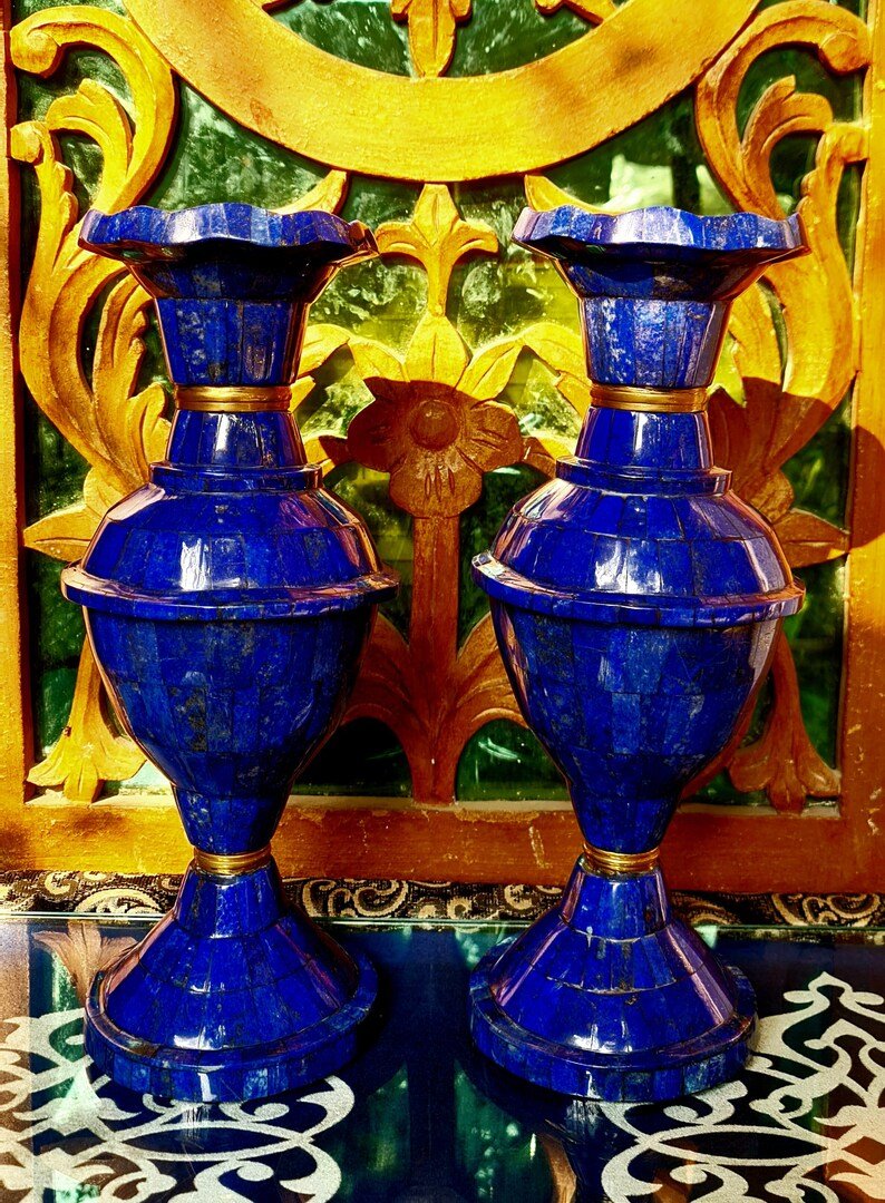 New design and very beautiful Lapis Lazuli Pair Flower Vases from Afghanistan. These are very Unique vases and It will enhance more beauty to your mineral collection and your home/office.