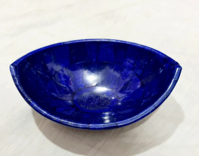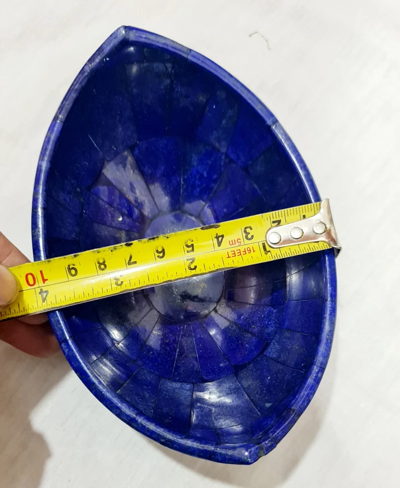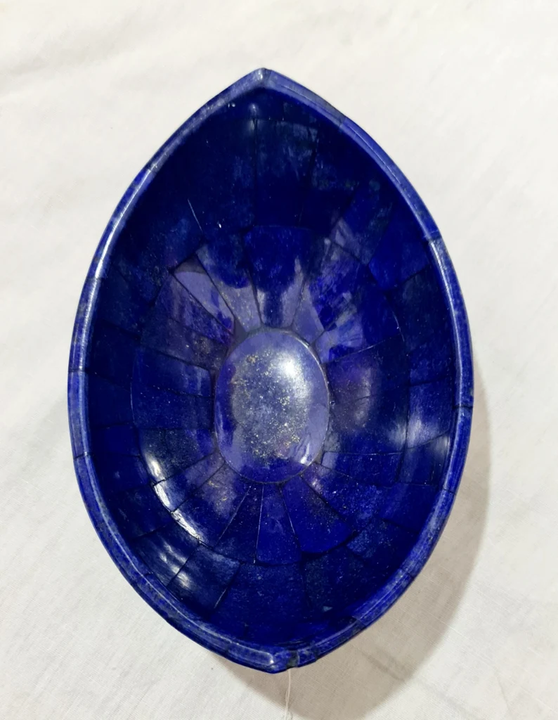 Presenting here stunning Lapis Lazuli Gemstone Bowl has an attractive blue and Lemon color with inclusions of golden pyrite. It is a very striking piece and the ideal place to keep your gemstones or trinkets safe.