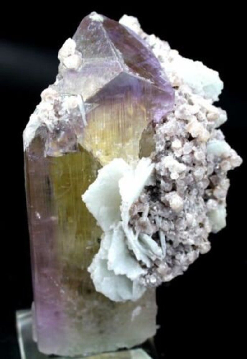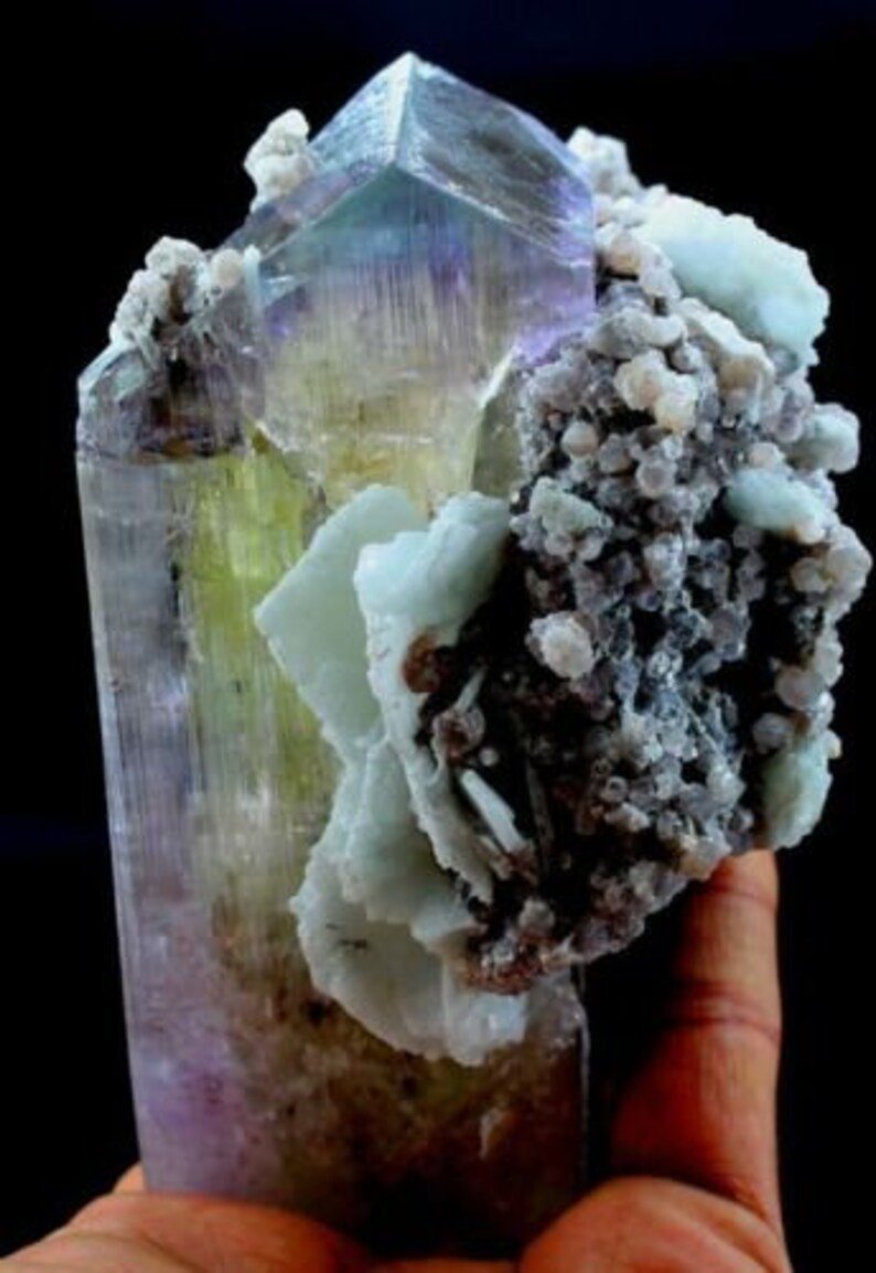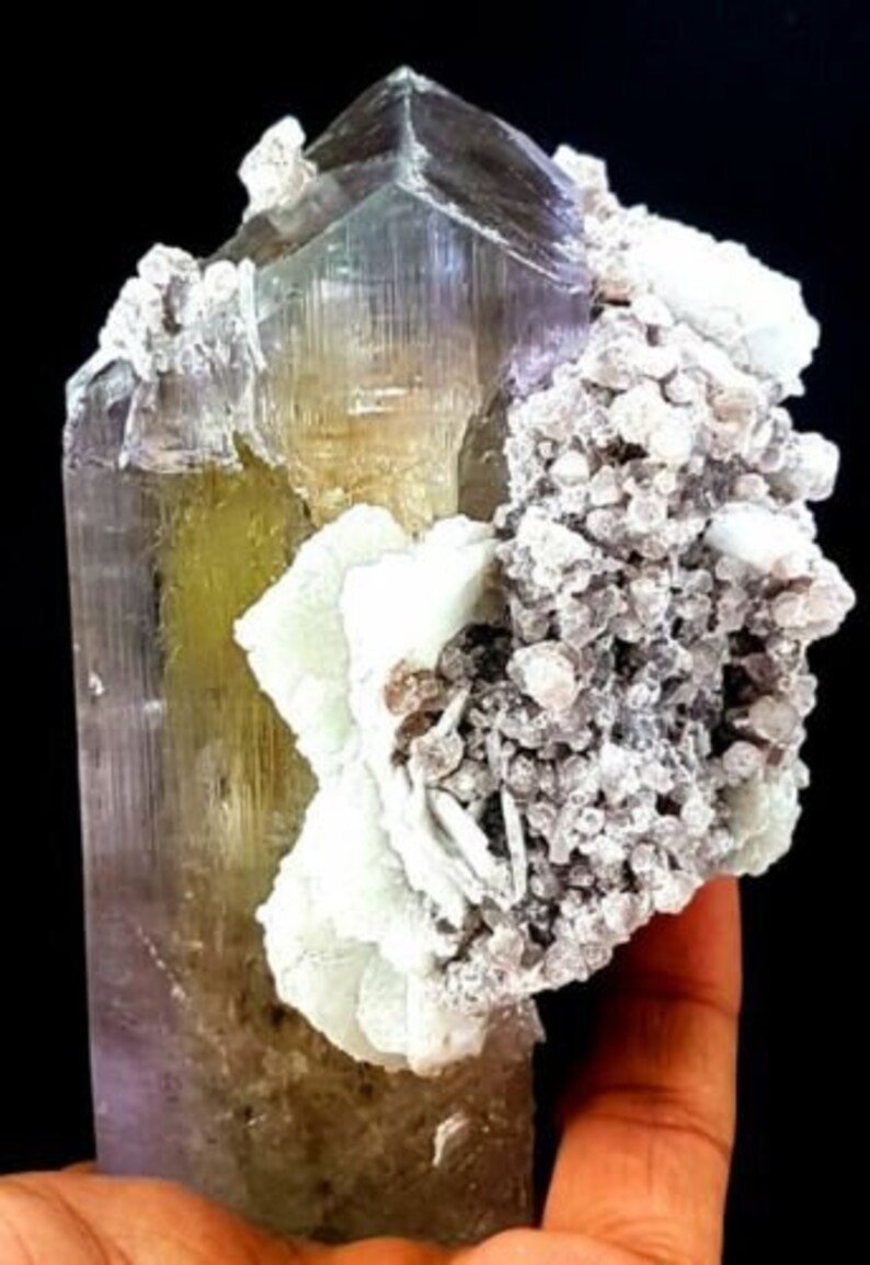 Presenting here a very beautiful Terminated Gemmy & Natural Rare Kunzite Crystal with Tantalite & Pink Lepidolite MIca & Cleavandite Combo Mineral Specimen.