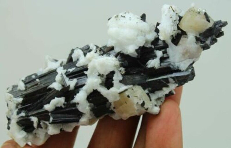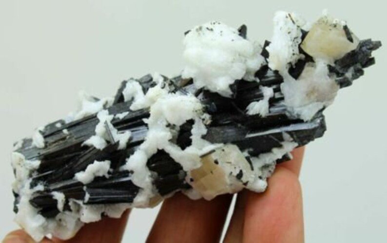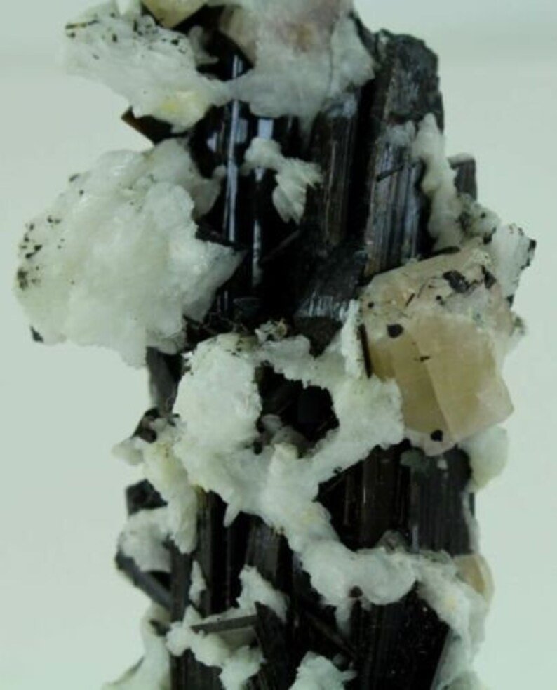 Product : Superb Top Quality Museum Piece, Fluorescent Apatite with Albite on Schorl Tourmaline Combine Completely Undamaged Specimen from Sakrdu Pakistan. This is an Unusual & Collection Specimen and Never Seen before a Beauty & Combination Like this… A Gift for All Minerals Lovers..