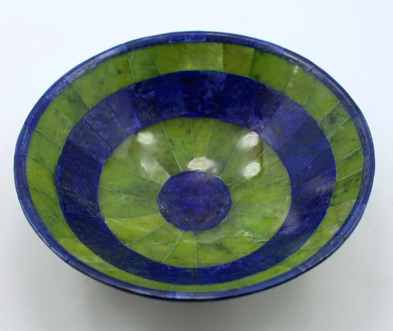 A genuine art piece, this mosaic Lapis lazuli Plate is a visual delight and a piece of treasure in itself.