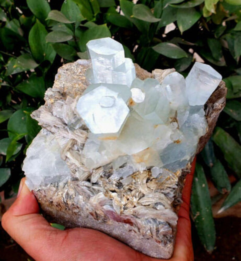 Exceptional natural sky blue aquamarine crystal cluster from Nagar, Pakistan, showcasing beautiful crystal growth and strong color saturation. This impressive 2130-gram specimen (127 × 115 × 98 mm) displays excellent clarity, attractive sky-blue tones, and a well-formed natural structure, making it a premium collector’s display piece.
