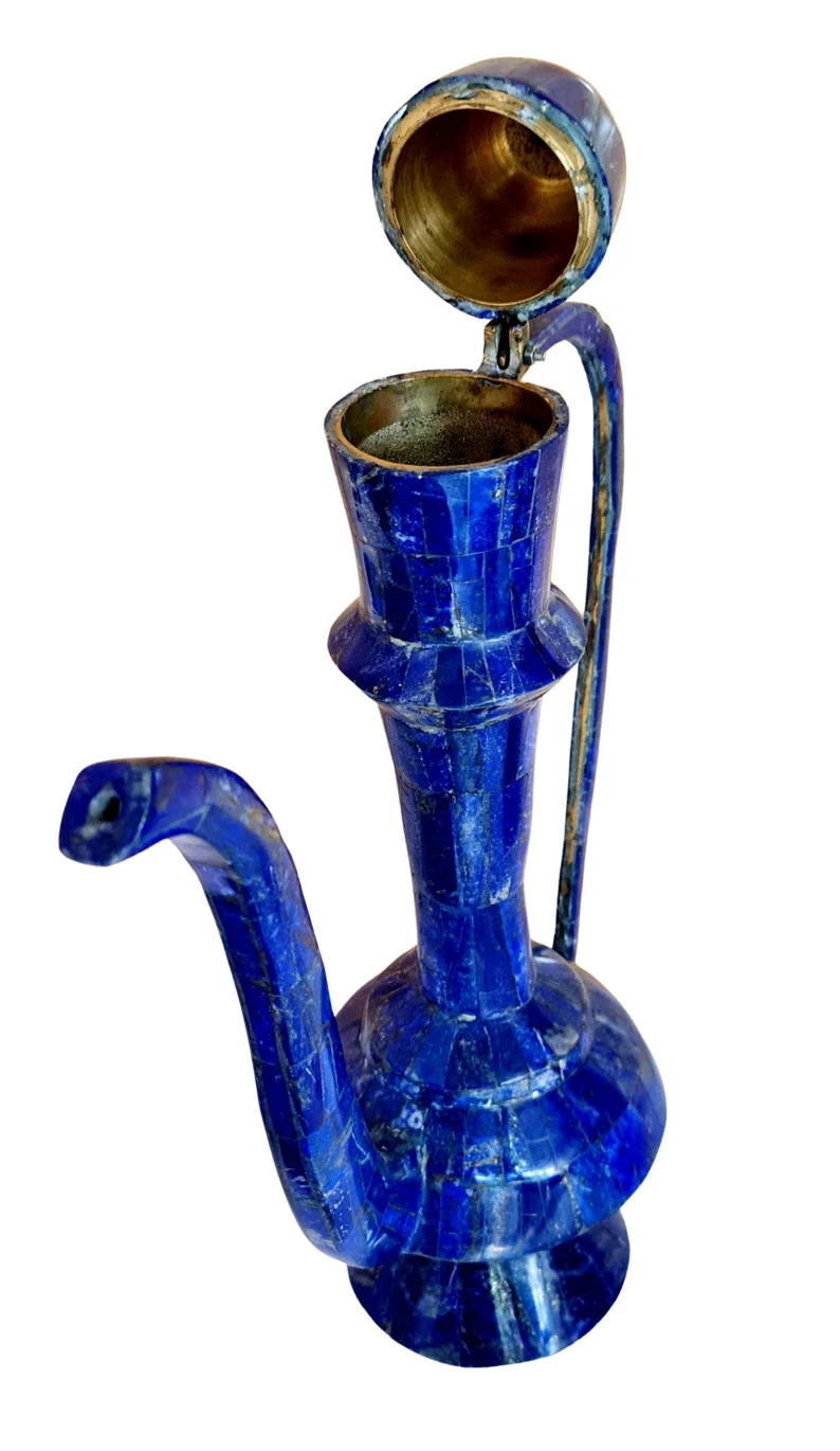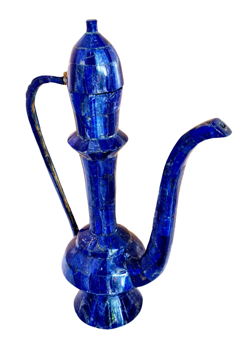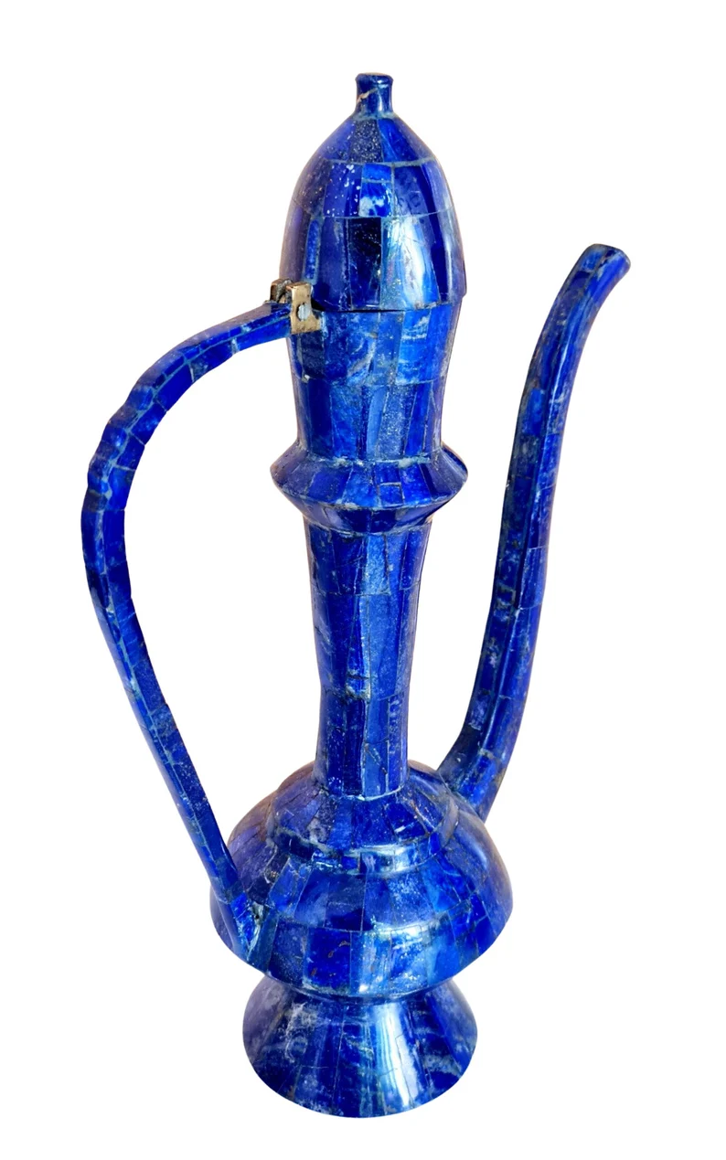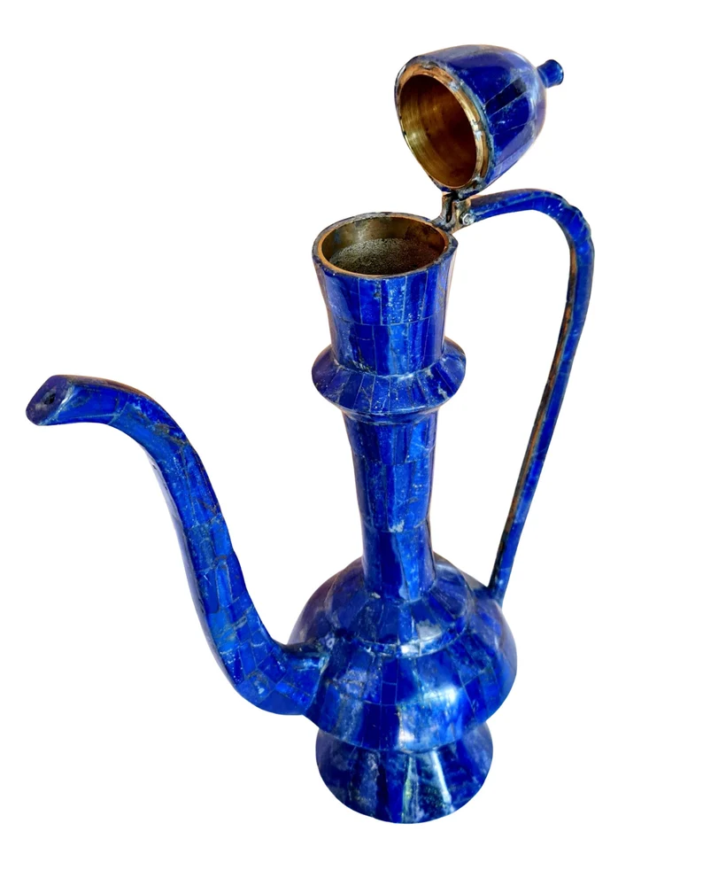 This exceptional large Arabic coffee pot (Dallah) is crafted in a traditional style and finished in a striking lapis lazuli-inspired design, giving it a rich, deep blue aesthetic associated with luxury and heritage.