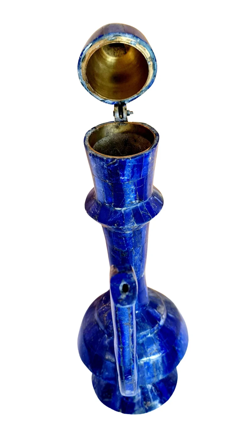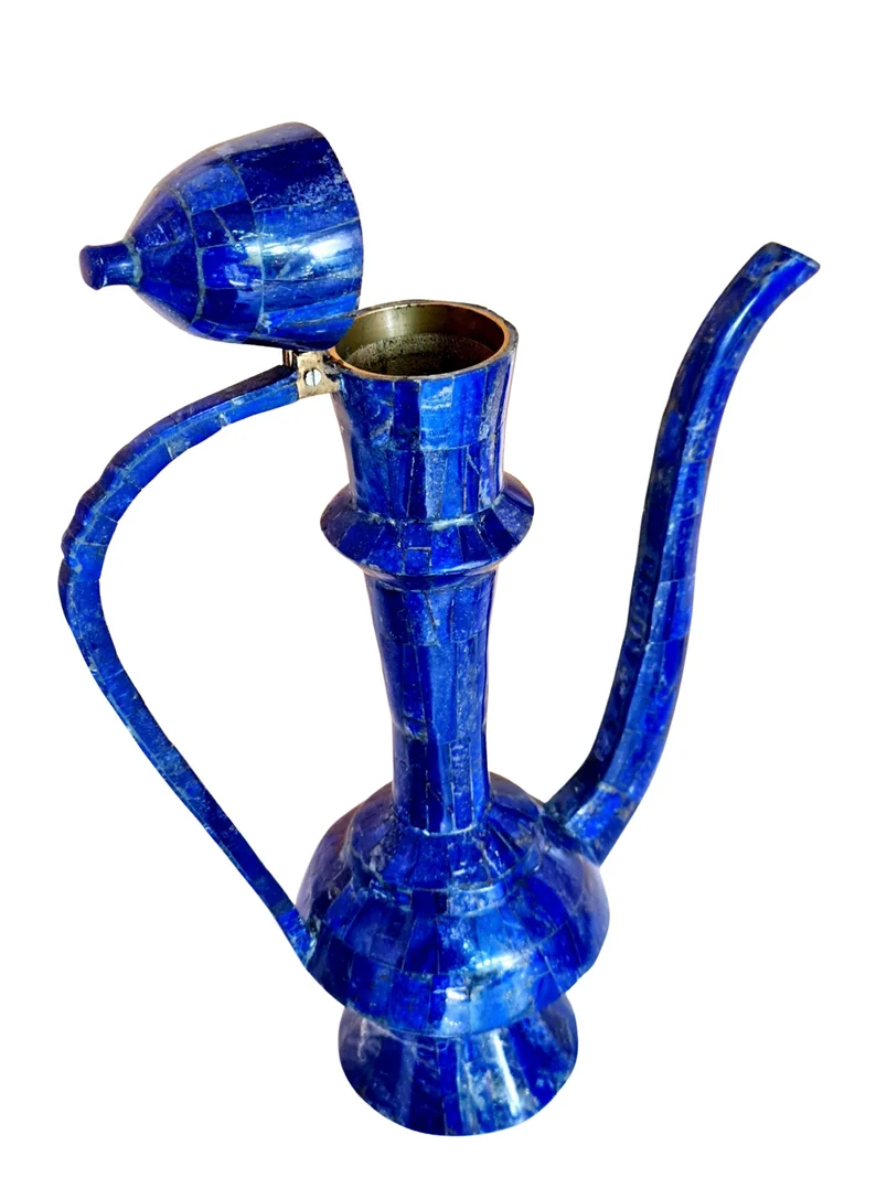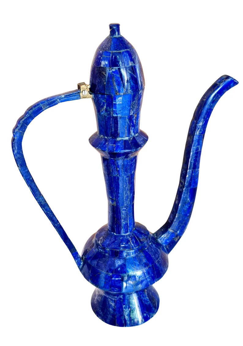 This exceptional large Arabic coffee pot (Dallah) is crafted in a traditional style and finished in a striking lapis lazuli-inspired design, giving it a rich, deep blue aesthetic associated with luxury and heritage.
