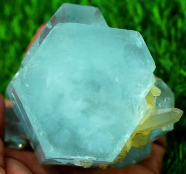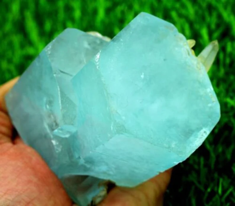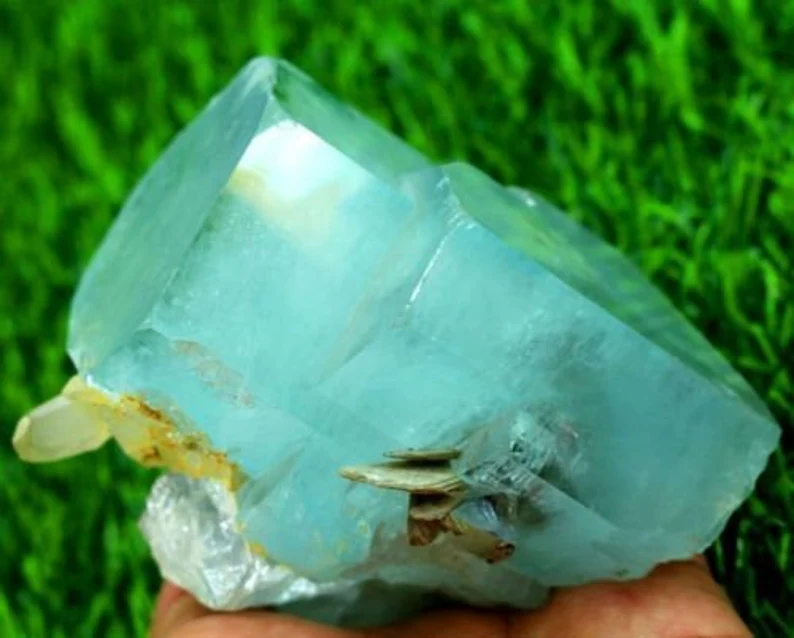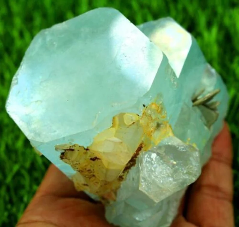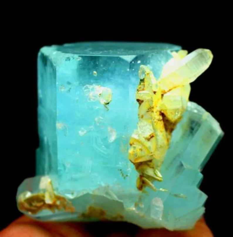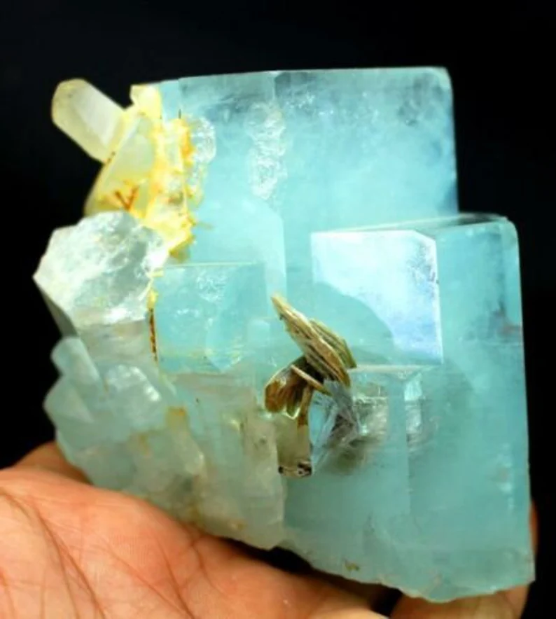 Beautiful natural sky blue aquamarine crystal cluster featuring sharp terminated formations combined with smoky quartz crystals. This 516-gram specimen displays excellent luster, strong crystal integrity, and an attractive natural association, making it a standout collector’s piece.