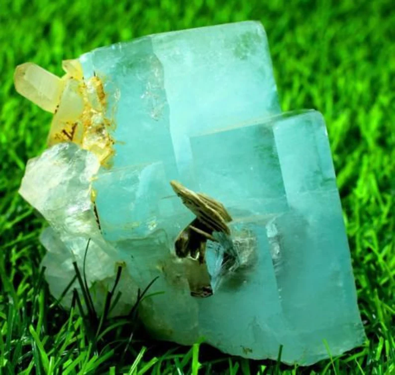 Form: Aquamarine Crystal Cluster with Smoky Quartz